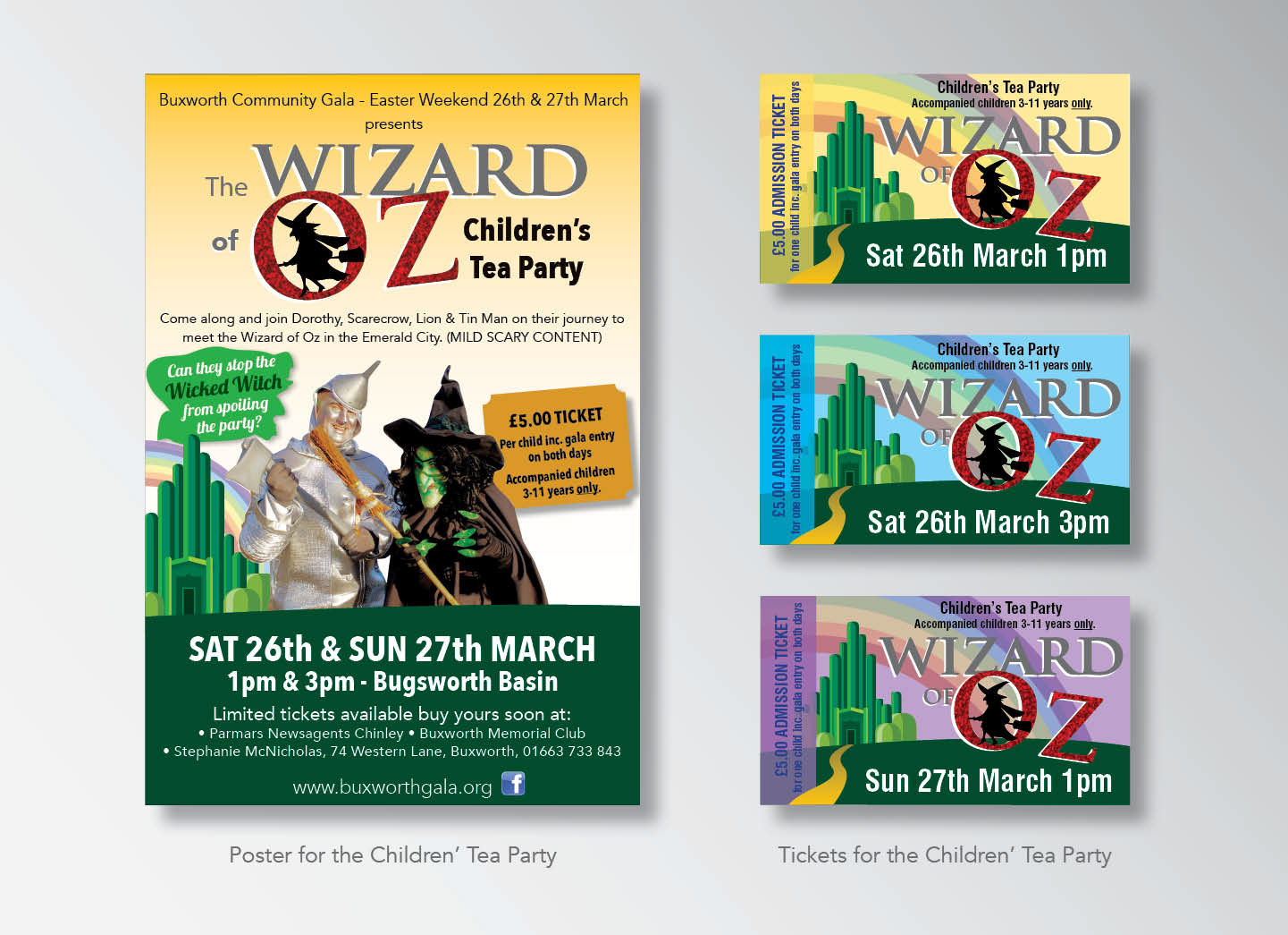Poster and ticket designs for the children's Tea Party: The Wizard of Oz, Who to do you think is the witch on the photo ?.